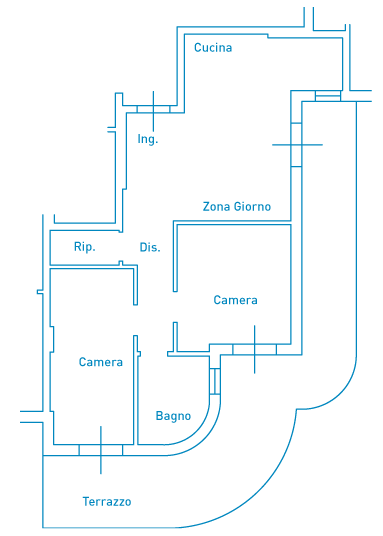ingresso | soggiorno | angolo cottura | camera | camera | bagno | terrazzo | posto auto riservato