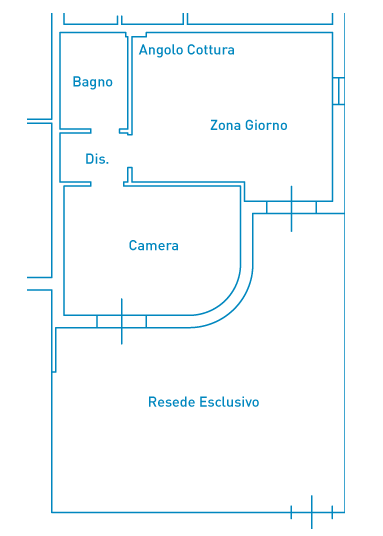ingresso | soggiorno | angolo cottura | camera matrimoniale | bagno | giardino | posto auto riservato